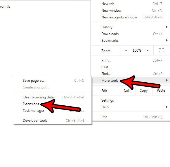 Βήμα 3: Επιλέξτε τοΠερισσότερα εργαλείαεπιλογή και, στη συνέχεια, κάντε κλικ στο κουμπίΕπεκτάσεις.