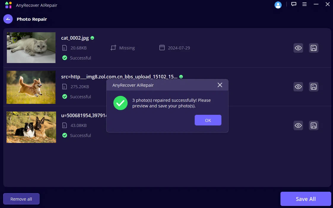 Οχι. Τα ηλεκτρονικά εργαλεία επισκευής JPG μπορούν μερικές φορές να διορθώσουν μέτρια κατεστραμμένα αρχεία, αλλά μπορεί να αγωνιστούν με έντονα κατεστραμμένες εικόνες. Τα περισσότερα δωρεάν ηλεκτρονικά εργαλεία λειτουργούν με την επισκευή δομών και κεφαλίδων αρχείων, οι οποίες βοηθούν στην ανάκτηση της βασικής ορατότητας ή την κατάργηση μικρών δυσλειτουργιών. Ωστόσο, εάν το αρχείο είναι εκτεταμένα κατεστραμμένο (π.χ., με σημαντικά ελλείποντα δεδομένα), αυτά τα εργαλεία μπορούν να αποκαταστήσουν μόνο εν μέρει την εικόνα ή να μην λειτουργούν καθόλου. Σε τέτοιες περιπτώσεις, το επαγγελματικό λογισμικό ή τα ειδικά εργαλεία επισκευής, όπως το AnyRecover AirePair, μπορεί να είναι πιο αποτελεσματικό για διεξοδική ανάκαμψη.