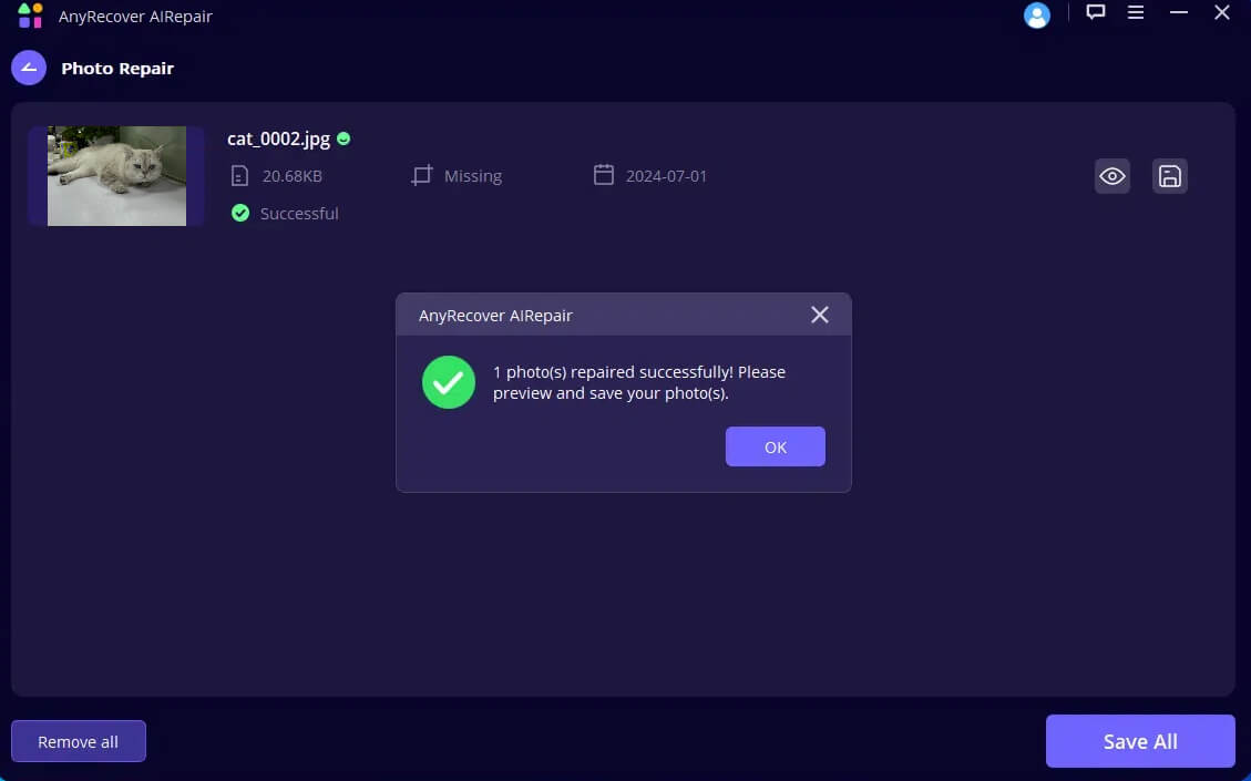 Βήμα 3:Όταν ολοκληρωθεί η διαδικασία επισκευής, μπορείτε να δείτε τις φωτογραφίες για να βεβαιωθείτε ότι είστε ικανοποιημένοι και μπορείτε να τα αποθηκεύσετε όλα στον υπολογιστή σας.