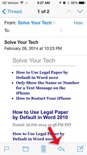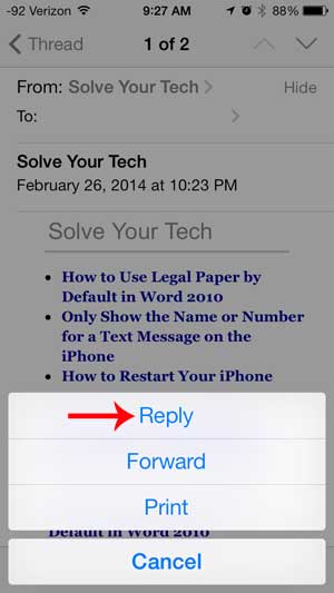 Έτσι, αν θέλετε να είστε σε θέση να απαντήσετε σε ένα μήνυμα ηλεκτρονικού ταχυδρομείου από το iPhone σας, μπορείτε να ακολουθήσετε το σεμινάριο μας παρακάτω.