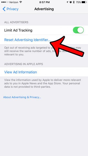Αλλά είστε σε θέση να επαναφέρετε αυτές τις πληροφορίες όποτε θέλετε ακολουθώντας τα βήματα στο πώς να επαναφέρετε το αναγνωριστικό διαφήμισης σε έναν οδηγό iPhone 7 παρακάτω.
