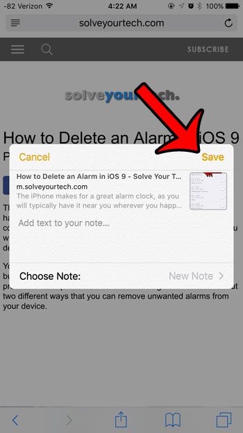 Συνεχίστε λοιπόν παρακάτω για να μάθετε πώς μπορείτε να ξεκινήσετε την αποθήκευση στην εφαρμογή Notes από το πρόγραμμα περιήγησης Safari.