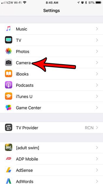 Βήμα 2: Μετακινηθείτε προς τα κάτω και επιλέξτε τοΚάμεραεπιλογή.