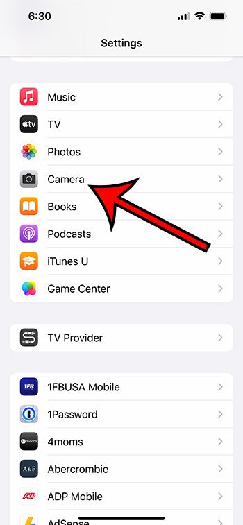 Βήμα 2: Μετακινηθείτε προς τα κάτω και επιλέξτε τοΚάμεραεπιλογή.