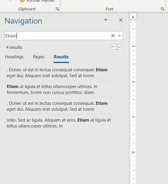 Τα αποτελέσματα που περιέχουν τον όρο αναζήτησης θα εμφανιστούν στη στήλη. Στη συνέχεια, μπορείτε να κάνετε κλικ σε ένα αποτέλεσμα αναζήτησης που θα ληφθεί στην τοποθεσία του στο έγγραφο.