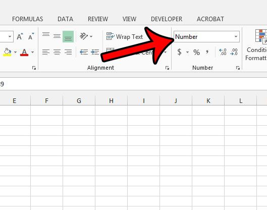 Βήμα 4: Εντοπίστε το αναπτυσσόμενο μενού στο επάνω μέρος τουΑριθμόςΤμήμα στην κορδέλα.