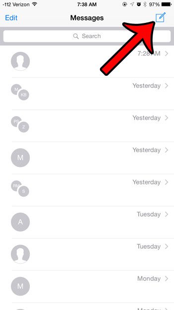 Η μέθοδος για την αποστολή ενός μηνύματος ομάδας από το iPhone 6 σας είναι πολύ παρόμοια με τη δημιουργία ενός μηνύματος που στέλνετε μόνο σε ένα άτομο. Το σεμινάριο μας παρακάτω θα σας δείξει πώς να προσθέσετε πολλούς ανθρώπους σε ένα νέο μήνυμα, ώστε να μπορείτε να ξεκινήσετε τη δική σας νέα συνομιλία μηνυμάτων ομάδας.