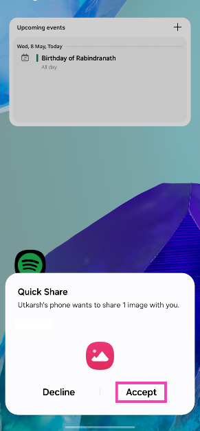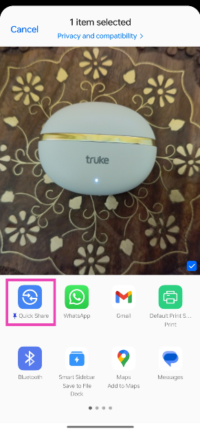 Ανοίξτε το αρχείο, πατήστε το εικονίδιο "Share", πατήστε στο "Quick Share" και επιλέξτε τη συσκευή προορισμού.
