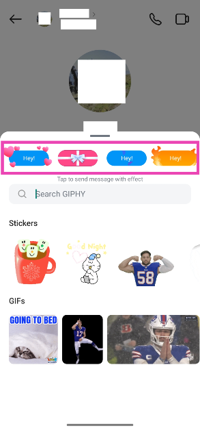 Πληκτρολογήστε το μήνυμα στο πλαίσιο κειμένου, πατήστε το εικονίδιο μεγεθυντικού φακού και επιλέξτε ένα ειδικό αποτέλεσμα από την κορυφαία σειρά. Τα ειδικά εφέ δεν λειτουργούν για μεγάλα μηνύματα.