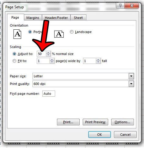 Εδώ είναι πώς να ρυθμίσετε την κλίμακα εκτύπωσης στο 50% στο Excel 2013 -