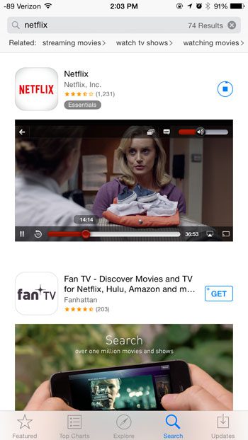 Η εφαρμογή Netflix μπορεί να μεταφορτωθεί δωρεάν στη συσκευή σας (εκτός από το κόστος της μηνιαίας συνδρομής) και μπορείτε να αρχίσετε να παρακολουθείτε βίντεο στο iPhone σας σε λίγα μόνο λεπτά.