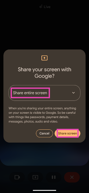 Μοιραστείτε την οθόνη του τηλεφώνου σας με το Gemini Live