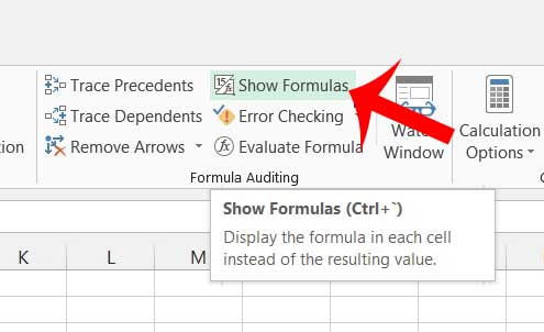 Τα παρακάτω βήματα πρόκειται να προσαρμόσουν τις ρυθμίσεις στο φύλλο εργασίας του Excel, έτσι ώστε ο τύπος να είναι ορατός μέσα στο κελί αντί της τιμής του τύπου. Μπορείτε απλά να ακολουθήσετε αυτά τα βήματα και πάλι για να τα μετακινήσετε στην προβολή της τιμής.