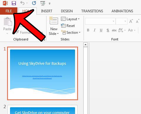 Ο οδηγός μας συνεχίζεται παρακάτω με πρόσθετες πληροφορίες για το πώς να παραλείψετε την περιοχή παρασκήνιο στο PowerPoint 2013, συμπεριλαμβανομένων εικόνων αυτών των βημάτων.