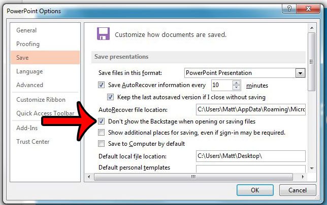 Τα βήματα σε αυτό το άρθρο θα σας δείξουν ποιες ρυθμίσεις θα αλλάξουν στο PowerPoint 2013 έτσι ώστε η περιοχή παρασκήνιο να μην ανοίγει όταν πατάτεCtrl + oγια να ανοίξετε ένα έγγραφο ήCtrl + sΓια να αποθηκεύσετε ένα έγγραφο από το πρόγραμμα.