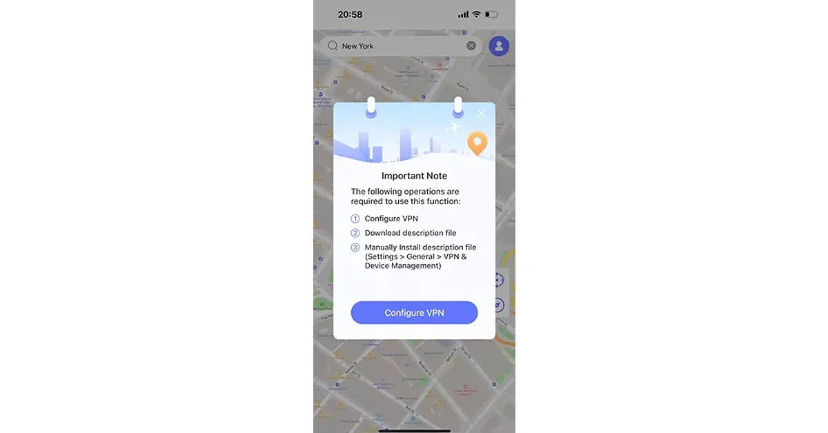 Το Mocpogo για το iOS θα σας ζητήσει να ρυθμίσετε το VPN