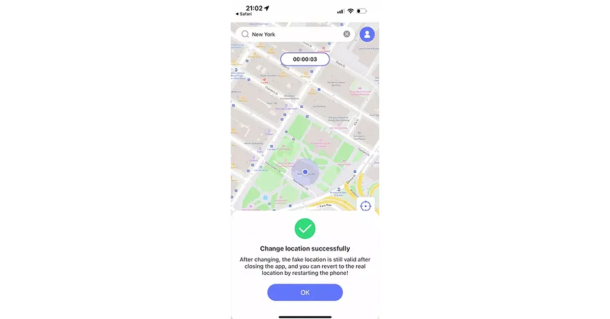 Βήμα 4: Επιτυχής τοποθεσία spoof στο iPhone