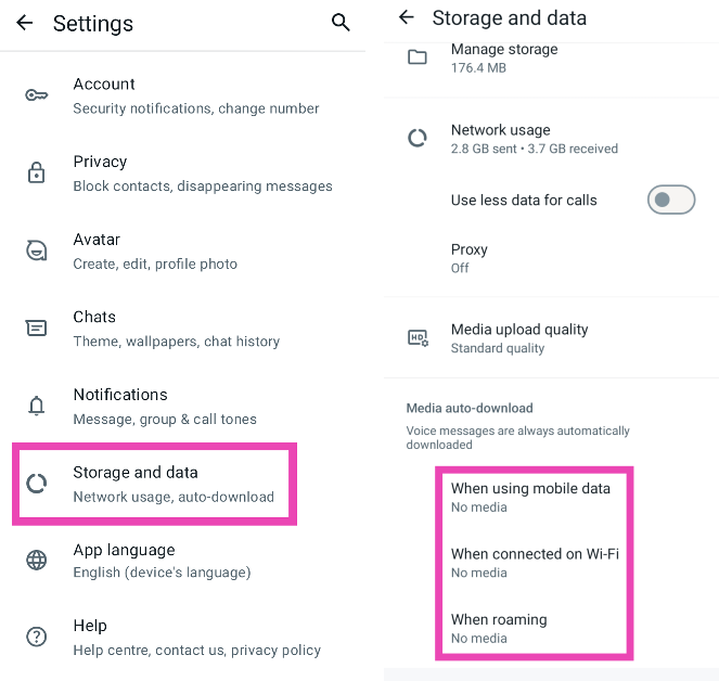 Πιο πρόσφατα, οι κακόβουλες οντότητες έχουν αρχίσει να χρησιμοποιούν μια διαδικασία που ονομάζεται «Steganography» για την ενσωμάτωση κακόβουλου λογισμικού σε εικόνες. Μόλις μεταφορτωθεί μια φορτωμένη εικόνα στη συσκευή σας, μπορεί να ωθήσει αυτόματα επιβλαβή κακόβουλο λογισμικό. Για να αποφευχθεί αυτό, απενεργοποιήστε τα αυτόματα φορτία στο WhatsApp.
