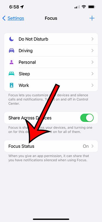 Τώρα που ξέρετε πώς να σταματήσετε να μοιράζεστε την κατάσταση εστίασης στο iPhone 13, δεν θα χρειαστεί να ανησυχείτε ότι άλλοι άνθρωποι μπορούν να δουν όταν έχετε τις ειδοποιήσεις σας να σιωπήσουν εάν προσπαθήσουν να σας στείλουν ένα μήνυμα κειμένου.