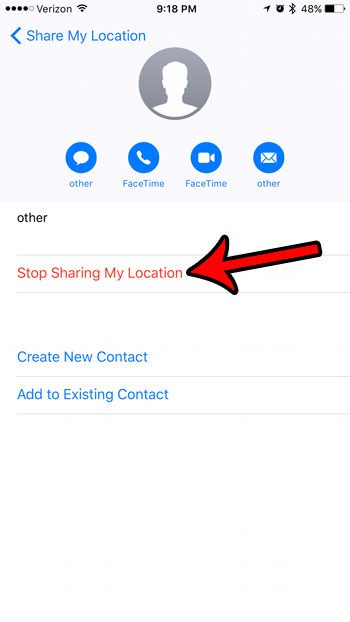 Ο οδηγός μας συνεχίζεται παρακάτω με πρόσθετες πληροφορίες σχετικά με τον τρόπο διακοπής της θέσης κοινής χρήσης με κάποιον iPhone βήματα, συμπεριλαμβανομένων εικόνων αυτής της διαδικασίας.