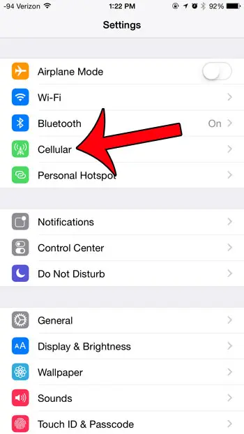 Βήμα 2: Επιλέξτε τοΚυτταρικόςΕπιλογή κοντά στην κορυφή της οθόνης.