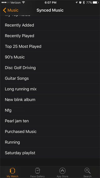 Βήμα 5: Επιλέξτε τη λίστα αναπαραγωγής που θέλετε να συγχρονίσετε με το ρολόι σας.