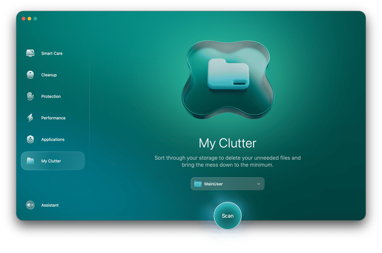 - Ανοίξτε την εφαρμογή και μεταβείτε στην ακαταστασία μου. Αυτή η λειτουργία σαρώνει το σύστημά σας για μεγάλα αρχεία, αντίγραφα και άλλες ακαταστασίες.
