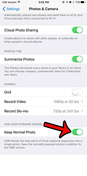 Ρυθμίσεις> Φωτογραφίες & κάμερα> Κρατήστε κανονική φωτογραφία(Βρίσκεται στο κάτω μέρος του μενού)