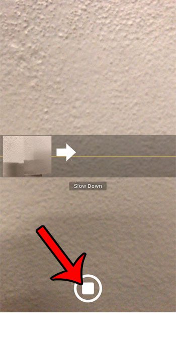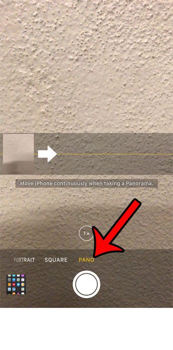 Βήμα 3: Πατήστε το κουμπί κλείστρου στο κάτω μέρος της οθόνης και, στη συνέχεια, μετακινήστε το iPhone σας αργά προς τα δεξιά, διατηρώντας το σταθερό κατά μήκος της οριζόντιας κίτρινης γραμμής. Μόλις ολοκληρώσετε την εικόνα, μπορείτε να πατήσετε ξανά το κουμπί κλείστρου.