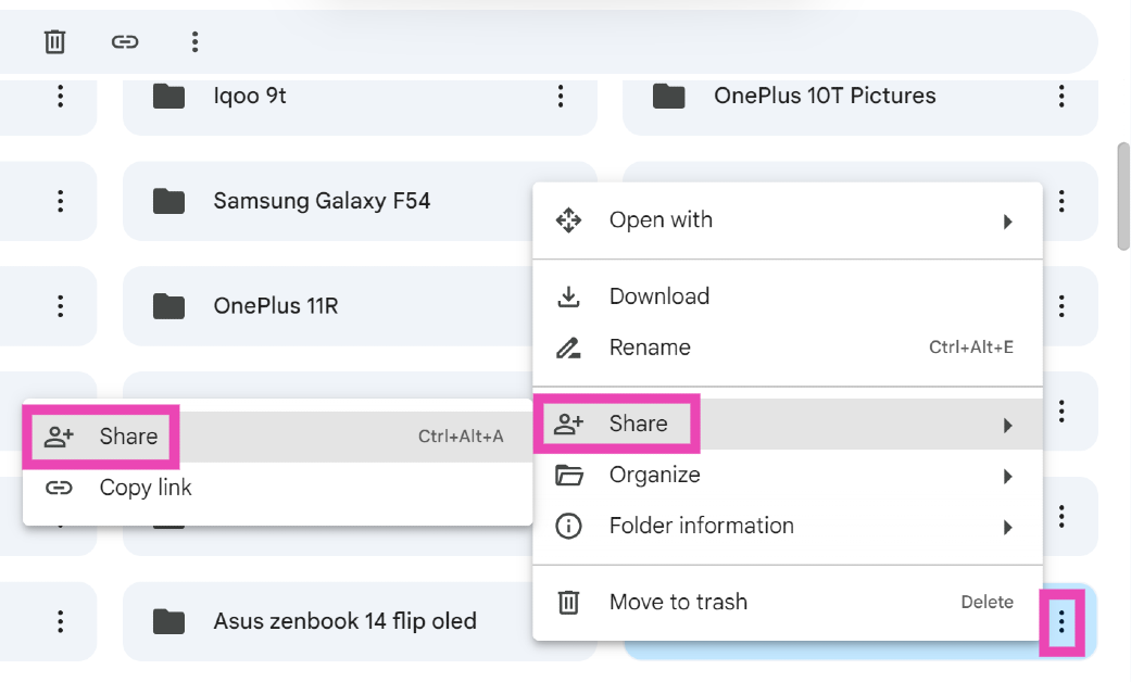 Εάν θέλετε μόνο να μεταφέρετε μια χούφτα αρχείων, ο καλύτερος τρόπος για να το κάνετε αυτό είναι να τα βάλετε μαζί σε ένα φάκελο και να το μοιραστείτε με τον δευτερεύον λογαριασμό σας. Μόλις αποκτήσετε πρόσβαση στο φάκελο χρησιμοποιώντας το δευτερεύον λογαριασμό, μετακινήστε το περιεχόμενό του σε άλλο φάκελο. Όταν μετακινηθούν τα αρχεία, θα αφαιρεθούν από τον αρχικό λογαριασμό.