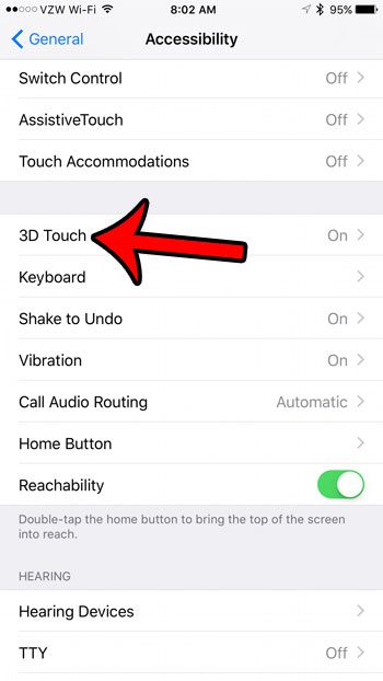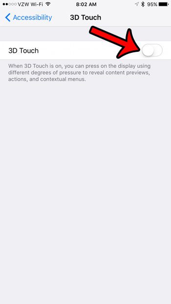 Τα βήματα σε αυτόν τον οδηγό πραγματοποιήθηκαν σε ένα iPhone 7 στο iOS 10. Αφού ακολουθήσετε τα παρακάτω βήματα, θα χάσετε τη δυνατότητα να εκτελέσετε οποιαδήποτε από τις ενέργειες που επιτυγχάνονται με τις ρυθμίσεις 3D αφής.