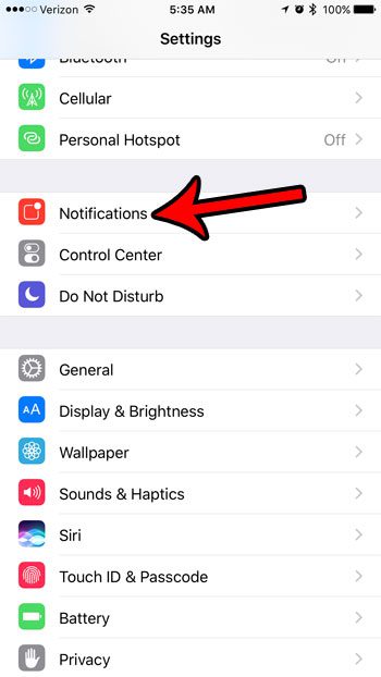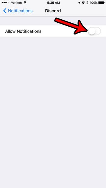 Βήμα 4: Πατήστε το κουμπί στα δεξιά των ειδοποιήσεων επιτρέπετε να το απενεργοποιήσετε. Δεν πρέπει πλέον να υπάρχει πράσινη σκίαση γύρω από το κουμπί και οι υπόλοιπες επιλογές στο μενού πρέπει να είναι κρυμμένες.