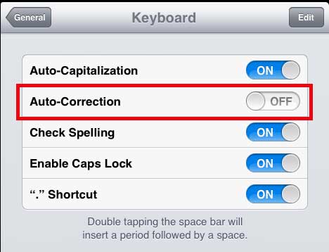 Δυστυχώς, αυτό το χαρακτηριστικό μπορεί να είναι λίγο απογοητευτικό εάν πληκτρολογείτε πολλές λέξεις που πιστεύει ότι το iPad πρέπει να διορθωθεί και θα μπορούσατε να βρείτε συχνά τον καθορισμό των διορθώσεων. Ωστόσο, η λειτουργία αυτόματης διόρθωσης μπορεί να απενεργοποιηθεί, ακολουθώντας αυτό το σεμινάριο.