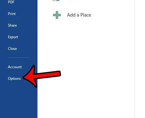 Βήμα 3: Κάντε κλικ στοΕπιλογέςκουμπί στη στήλη στην αριστερή πλευρά του παραθύρου.