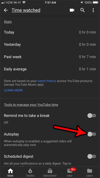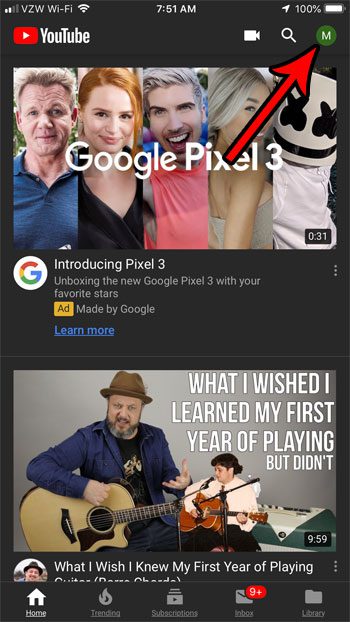 Τα βήματα σε αυτό το άρθρο πραγματοποιήθηκαν σε ένα iPhone 7 Plus στο iOS 12. Χρησιμοποιώ την πιο πρόσφατη έκδοση της εφαρμογής YouTube που ήταν διαθέσιμη όταν γράφτηκε αυτό το άρθρο. Συμπληρώνοντας τα βήματα σε αυτόν τον οδηγό, θα αλλάξετε μια ρύθμιση στην εφαρμογή YouTube έτσι ώστε να σταματήσει να παίζει αυτόματα ένα προτεινόμενο βίντεο μόλις τελειώσει το τρέχον βίντεο.