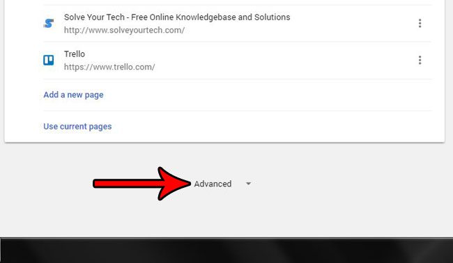 Βήμα 4: Μεταβείτε στο κάτω μέρος του μενού και κάντε κλικ στοΠροχωρημένοςεπιλογή.