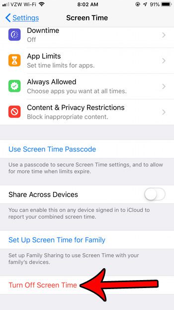 Ο οδηγός μας συνεχίζεται παρακάτω με πρόσθετες πληροφορίες σχετικά με τον τρόπο απενεργοποίησης του χρόνου οθόνης σε ένα iPhone, συμπεριλαμβανομένων των εικόνων αυτών των βημάτων.