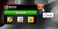 Επιλογή 1: Τοποθετήστε το ποντίκι σας πάνω από το gadget Norton 360, και στη συνέχεια κάντε κλικ στο κόκκινοXΣτην επάνω δεξιά γωνία του gadget.