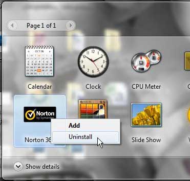 Βήμα 2: Κάντε δεξί κλικ στο gadget Norton 360 και, στη συνέχεια, κάντε κλικ στο κουμπίΑπεγκαθιστώ.