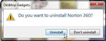 Σημειώστε ότι αυτό είναι μόνο απεγκατάσταση του γραφικού στοιχείου, όχι όλα τα Norton 360. Η διατύπωση στο αναδυόμενο παράθυρο είναι σύγχυση.