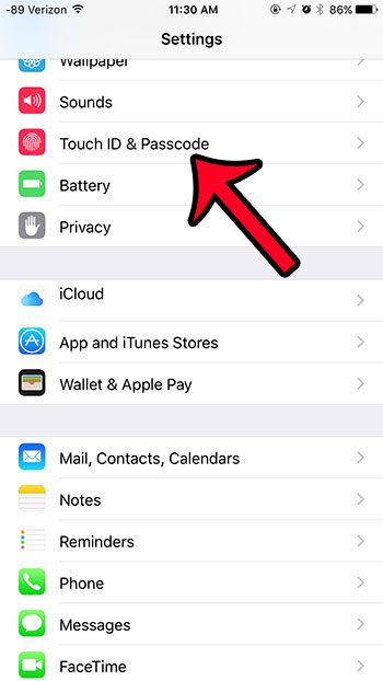 2. Επιλέξτε τοTouch ID & Passcodeμενού.