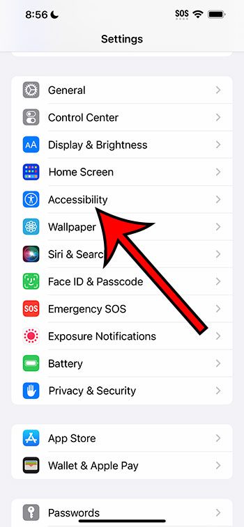 Βήμα 2: Μετακινηθείτε προς τα κάτω και επιλέξτε τοΠροσιτότηταεπιλογή.