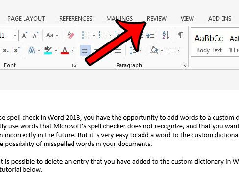 Το άρθρο μας συνεχίζεται παρακάτω με πρόσθετες πληροφορίες σχετικά με την ενεργοποίηση του ορθογραφικού ελέγχου στο Word 2013, συμπεριλαμβανομένων των εικόνων για αυτά τα βήματα.