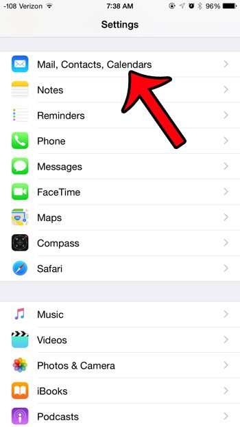 Βήμα 2: Μετακινηθείτε προς τα κάτω και επιλέξτε τοΤαχυδρομείο, επαφές, ημερολόγιαεπιλογή.