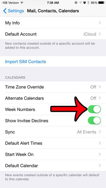 Οι αριθμοί εβδομάδας δεν είναι ορατοί στο ημερολόγιο iPhone από προεπιλογή, αλλά είναι μια επιλογή που μπορείτε να ενεργοποιήσετε.