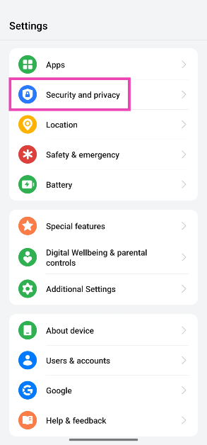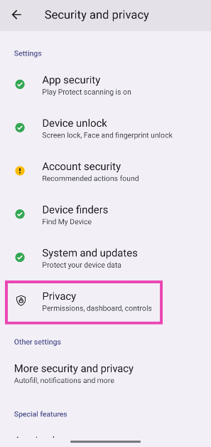 Βήμα 1:ΠηγαίνωΡυθμίσειςκαι επιλέξτεΑσφάλεια και ιδιωτικότητα.