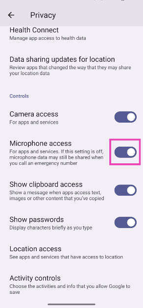 Βήμα 3:Μετακινηθείτε προς τα κάτω και ενεργοποιήστε/απενεργοποιήστε το διακόπτη εναλλαγής δίπλα στοΠρόσβαση μικροφώνου.