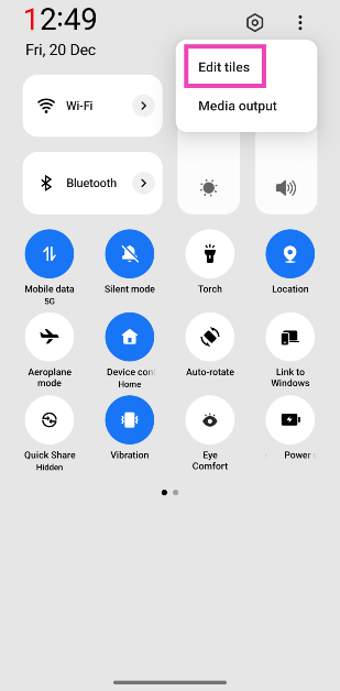 Βήμα 1: Κτύπημα κάτωαπό τογραμμή κατάστασηςΓια να αποκαλύψετε το μενού γρήγορων ρυθμίσεων.