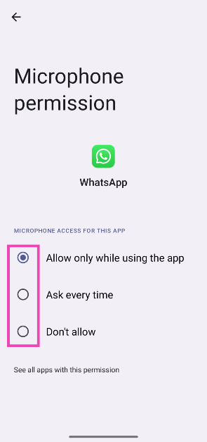 Βήμα 5:Επιλέξτε την πρόσβαση μικροφώνουεπίπεδογια την εφαρμογή.