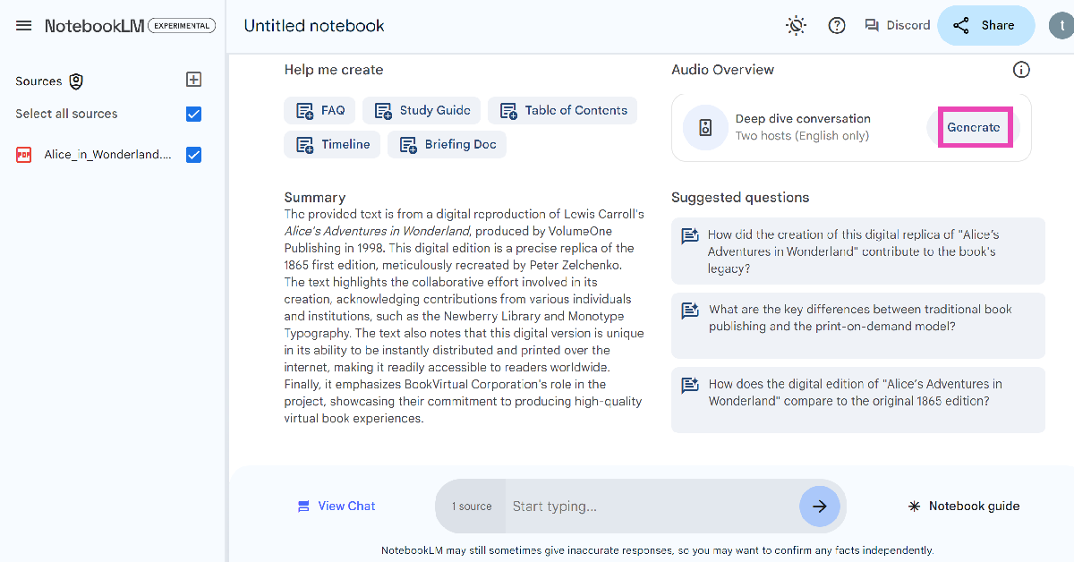 Έτσι μπορείτε να μετατρέψετε τις σημειώσεις της έρευνας σε ένα podcast χρησιμοποιώντας τη λειτουργία επισκόπησης ήχου στοΤο NotebookLM της Google. Κατά τη στιγμή της σύνταξης αυτού του άρθρου, αυτό το χαρακτηριστικό δεν περιορίζεται από ένα paywall. Το μόνο που χρειάζεστε είναι ένας λογαριασμός Google για να αποκτήσετε πρόσβαση στο NotebookLM. Η συζήτηση που δημιουργείται από το AI διαρκεί λίγα λεπτά για να καταστεί, ανάλογα με το μέγεθος του εγγράφου. Εάν είστε κουρασμένοι από περιεχόμενο που παράγεται από το AI,Ακολουθούν μερικές μέθοδοιότι μπορείτε να χρησιμοποιήσετε για να ανιχνεύσετε ψεύτικες ηχογραφήσεις και φωνητικές εγγραφές.